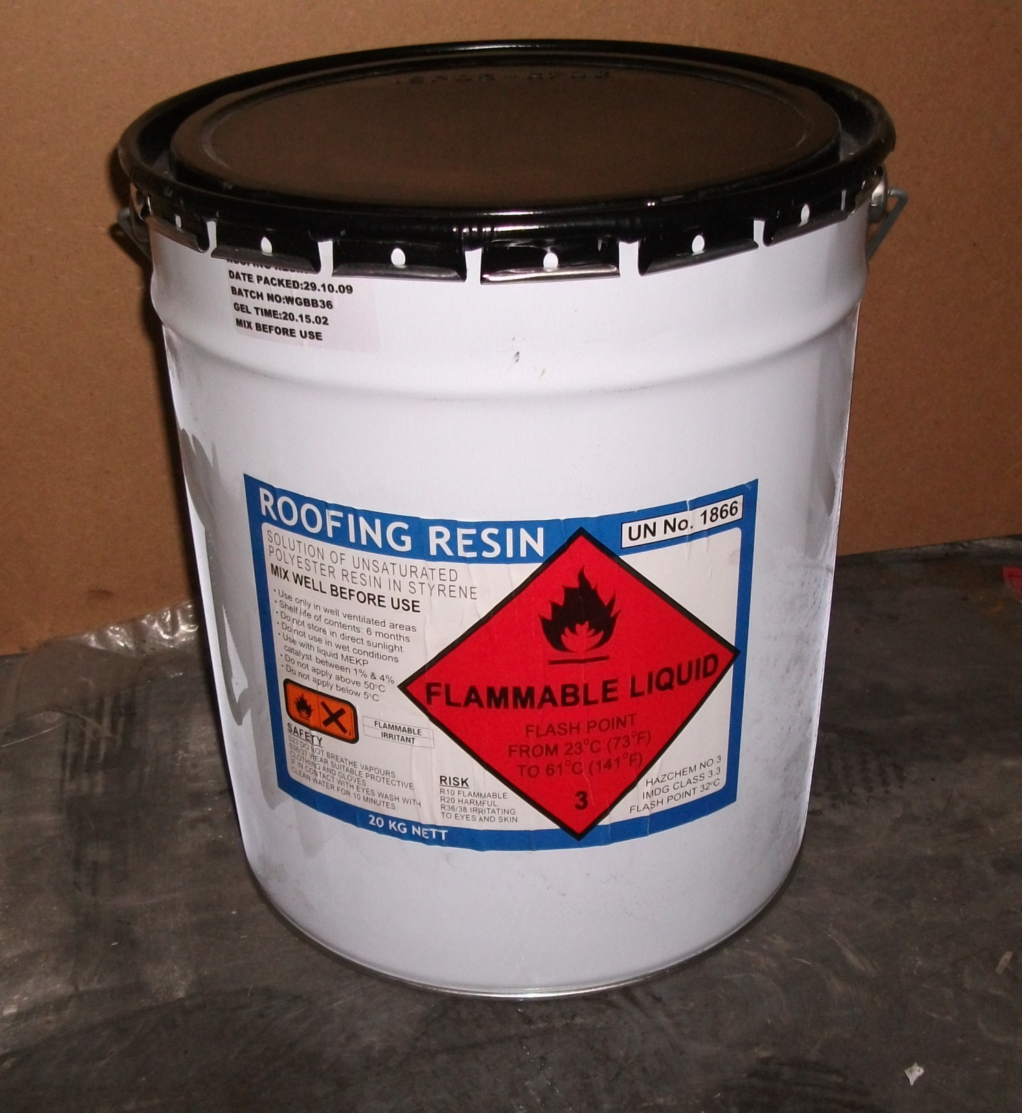 Roofing resin resin (from 20kg) Low cost lay-up resin, (gel and cure times